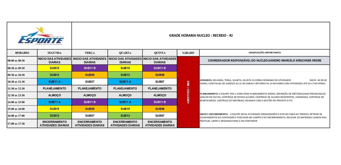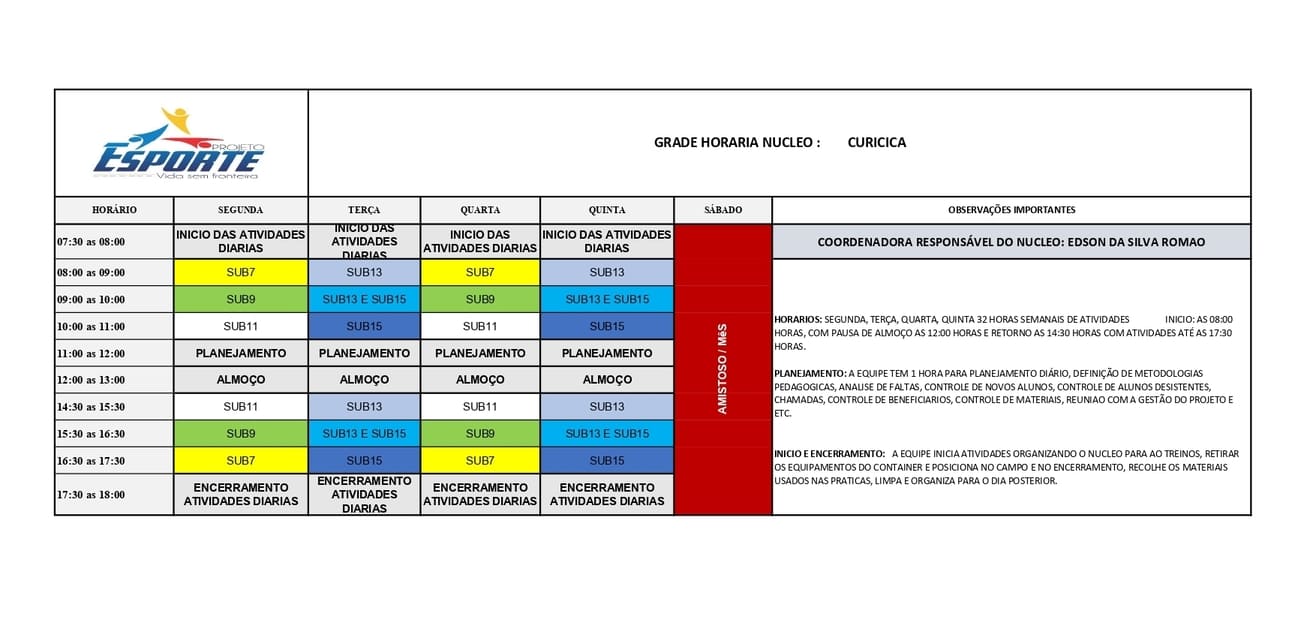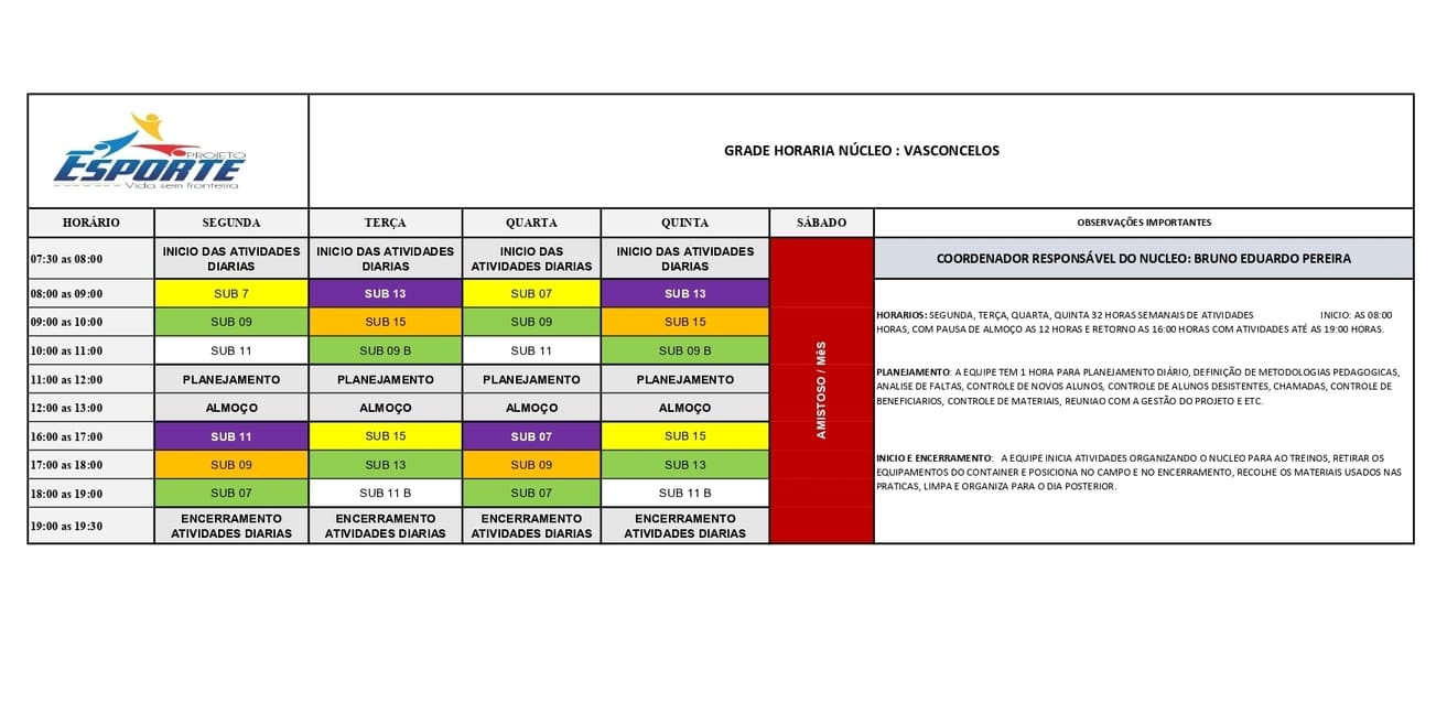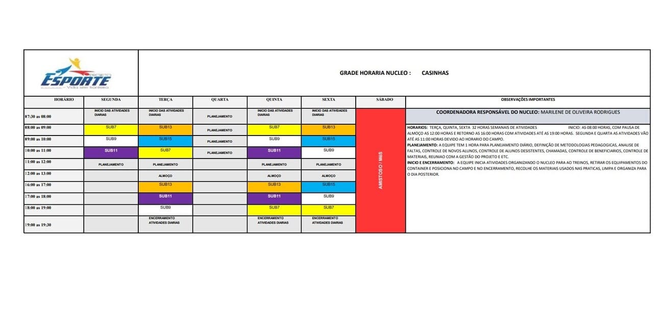HORÁRIO: de segunda a quinta das 06:30 às 10:00 e 16:00 às 19:30